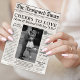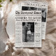 Cheers to Love - este convite de casamento clássico, único e tradicional, estilo jornal, com 3 fotos em preto e branco, manchetes e histórias de temas e textos de colunas editoriais, apresenta uma linha cronológica ou itinerário especial para o dia do casamento com ícones infográficos e bonitos de casamento, citação de casal feliz, nossa história de proposta, site de casamento e instruções de rsvp digitais. Personalize o texto e substitua-o pelo seu próprio, carregue facilmente as suas fotografias e até edite a colocação dos componentes do design ou adicione o seu código QR ao verso, clicando no botão azul "Editar utilizando a ferramenta design" na parte inferior da janela "Personalizar"! Navegue até a guia "camadas" na coluna esquerda da tela de edição, selecione a camada frontal ou traseira, clique no elemento que você gostaria de alterar e torne-a sua própria lista de opções de design personalizado e as perguntas são sempre bem-vindas - clique no botão "mensagem" ou envie um email para figandlilyco@gmail.com. As fotos são apenas para fins de espaço reservado e devem ser substituídas. A design é carinhosamente criada pela Fig e Lily Studios, e o crédito fotográfico do noivado da nossa filha vai para o IG: @laurenmargaretfotografia