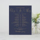 Esta linha do cronograma de casamento de na moda pode ser personalizada com seus detalhes de casamento em letras de ouro em chic em um fundo azul marinho. Projetado por Thisnotme©