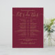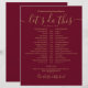 Este simples e elegante cronograma de casamento em burgundy e dourado pode ser personalizado com os detalhes do seu casamento em letras modernas. Projetado por Thisisnotme