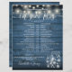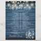 Esta linha do cronograma de casamento da na moda rustic, com luzes bonito de cordas e jarras de pedras, pode ser personalizada com seus detalhes de casamento em letras brancas chic em um fundo de painéis de madeira azul. Projetado por Thisnotme©