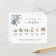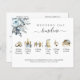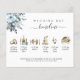 Linda linha do tempo do casamento e programa de aquarelas para impressionar seus convidados. Detalhe da caligrafia escrita à mão elegante. Buquê de aquarela delicada no canto com flores e folhagem em tons azuis, marinhos, brancos, sábios e cinzas empoeirados. Imagens da linha cronológica de cores d'água do fino artista em matizes de ouro e coordenando detalhes florais para o buquê no canto. Parte da nossa coleção de Casamentos e Eventos "Montanhas Azuis Russas". Capacidade de personalizar informações no verso para atender às suas necessidades e até mover imagens de linha do tempo e texto para uma ordem diferente. Também disponível com o dorso em lavagem de cor azul empoeirada e sem texto.