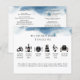 Elegante programa de linha do tempo moderna com mancha de aquarela azul suave e graciosa no topo. Personalize o guardanapo na imagem jantada com suas próprias iniciais. Estilo moderno, limpo e simples. Imagens em preto elegante, cinzas e tons esticados. Capacidade de personalizar informações no verso para o programa de casamento ou qualquer mensagem de boas-vindas que você quiser.