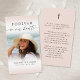 Keep the memory of a loved one close with this custom color personalized prayer card (shown in blush pink) featuring one treasured photo, the sentiment FOREVER IN OUR HEARTS, name and dates on the front and an editable prayer accented with a simple cross on the back. With its simple yet elegant design and modern script typography, it makes a meaningful keepsake to share at a funeral, memorial service or Celebration of Life and offers comfort and a lasting tribute for family and friends. Its small and portable size of 3.5x2" (wallet-sized) makes it convenient for loved ones to carry it with them as a reminder of your loved one’s life and spirit. Personalization makes each card unique.