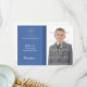 cartão com fotos religioso em azul com fronteira listrada e cruz branca. Perfeito por cartas de agradecimento, anúncios ou convites para comunicação, confirmação ou batismo.