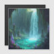 A glowing waterfall cascades into a turquoise pool, surrounded by vibrant crystals and lush moss.