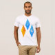 Os cristais são uma bela pedra preciosa e esta design é de três gemas de cristal bem coloridas e moldadas. Eles são colocados um feito, um para cima, um para baixo em um padrão. As joias têm um belo brilho para elas. Este design de gemas de cristal parece excelente nesta camiseta masculina. Perfeito para si mesmo ou como presente
