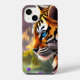 filhote de pinheiro azul bebê Pinto Tiger Paisagem montanhosa e flores roxas AI gerada arte AI Arte criada por minx267