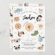 Cute Safari, Selva, animal do zoológico enfrenta convite de aniversários com elefante, girafa, coala, leão, zebra, crocodilo, tigre, panda, pássaros, rinoceronte e hipopótamo.