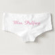 Para a noiva o enxoval de noiva e Weds recentemente em seus lua de mel, calcinhas bonitos dos boyshorts no algodão branco com Sra. e no sobrenome novo da noiva no rosa que pode ser mudado a uma outra cor: recem casados