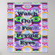 Olhos de estilo grafite em cores pastéis com o texto vigiados para olhares rezadores, decoração temática perfeita para um mundo ciberpunk futurista onde a paranoia é o novo normal.