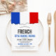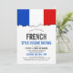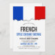 Uma bandeira francesa recebeu um cartão de convite branco limpo para o seu próximo evento temático francês. Um item de excelente a ser usado para um evento de cozinha de comida ou churrasco de seleção de comida especial.