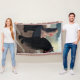 Lindo Garanhão Frísio com uma bela mulher em suas costas! Paisagem deslumbrante, litoral, praia, Ilha Tropical!