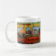 Cumprimentos caneca do cartão da grande-letra do vintage de Gary, Indiana. O cartão publica-se em ambos os lados da caneca.