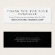 Cartões de código de cupom minimalistas para deslizar para os pacotes que você envia aos seus clientes, onde você pode adicionar informações sobre o desconto que você oferece na próxima ordem. Adicione as condições do desconto e um obrigado que você envia em texto preto contra um fundo branco de um lado, e suas informações de contato em texto branco contra um fundo preto no outro lado do cartão de inserção do pacote preto e branco para sua pequena empresa.