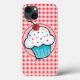 cupcake azul legal e fofo com gelo branco, aspersores coloridos e uma cereja vermelha no topo do gingham fofo; padrão vermelho, rosa e branco do país com verificação. presente de excelente para crianças ou dono de padaria!