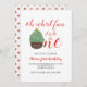 Que divertido, é ser um! Cupcake da Árvore Natal primeiro convite de aniversário com cupcake de aquarela e bolinhas vermelha de volta.