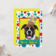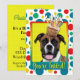 Convide seus convidados com este cartão de saudação de cachorro branco. Com um cupcake balanceado na cabeça, este design certamente trará um sorriso e risos! BTW, Este design tem várias versões, com cores de fundo diferentes. Há também uma versão de Feliz Aniversário.