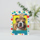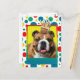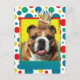 Convide seus convidados com este Cartão de Saudação do Bulldog. Com um cupcake balanceado na cabeça, este design pode trazer um sorriso e risadinhas! BTW, Este design tem várias versões, com diferentes cores de fundo. Há também uma versão de aniversário feliz.