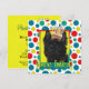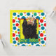 Convide seus convidados com este cartão branco de saudação Cairn Terrier Dog. Com um cupcake balanceado na cabeça, este design certamente trará um sorriso e risos! BTW, Este design tem várias versões, com cores de fundo diferentes. Há também uma versão de Feliz Aniversário.
