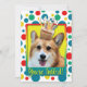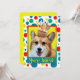 Convide seus convidados com este cartão de saudação de cachorro branco Corgi. Com um cupcake balanceado na cabeça, este design certamente trará um sorriso e risos! BTW, Este design tem várias versões, com cores de fundo diferentes. Há também uma versão de Feliz Aniversário.