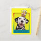 Convide seus convidados com este Cartão de Saudação de Cão Dalmaciano. Com um cupcake balanceado na cabeça, este design pode trazer um sorriso e risadinhas! BTW, Este design tem várias versões, com diferentes cores de fundo. Há também uma versão de aniversário feliz.