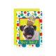 Convide seus convidados com este Cartão de Saudação de Cachorro Cachorro. Com um cupcake balanceado na cabeça, este design certamente trará um sorriso e risos! BTW, Este design tem várias versões, com cores de fundo diferentes. Há também uma versão de Feliz Aniversário.