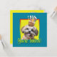 Convide seus convidados com este cartão de saudação chiques de cachorro. Com um cupcake balanceado na cabeça, este design certamente trará um sorriso e risos! BTW, Este design tem várias versões, com cores de fundo diferentes. Há também uma versão de Feliz Aniversário.
