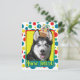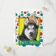 Convide os seus convidados com este cartão siberiano de saudação de cães siberianos. Com um cupcake balanceado na cabeça, este design pode trazer um sorriso e risadinhas! BTW, Este design tem várias versões, com diferentes cores de fundo. Há também uma versão de aniversário feliz.