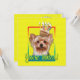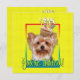 Convide seus convidados com este cartão de saudação de Yorkshire Terrier Dog. Com um cupcake balanceado na cabeça, este design pode trazer um sorriso e risadinhas! BTW, Este design tem várias versões, com diferentes cores de fundo. Há também uma versão de aniversário feliz.