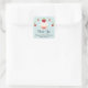 Adicione seu nome a este cupcake de morango fofo personalizado e personalizado que favorece etiquetas adesivas com morangos, coração vermelho e branco e design verde floral de flor amarela com fundo bolinhas azul. Estes fazem belos chás de panela de casamento ou de festa favorecem etiquetas e adesivos. Trabalho de arte © Chrissy H. Studios, LLC. Todos os Direitos Reservados.