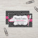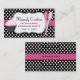 Cartão de visita bonito da padaria feito em um fundo preto e branco das bolinhas, com uma banda corajosa cor-de-rosa, através do meio, e uma área de texto branca afiada preta decorativa, na parte dianteira. Os gráficos lunáticos do cupcake cor-de-rosa, branco, e preto decoram o lado esquerdo, do cartão e das colheres cor-de-rosa e brancas no lado direito. O texto é inteiramente customizável serir suas necessidades do negócio. Excelente para em casa padeiros demasiado.