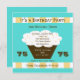 Este Convite de aniversário 75 apresenta um cupcake sobre um fundo aqua com sotaques laranja e brancos. Todos os seus importantes detalhes de convite estão no fazer do cupcake para um divertido convite de aniversário 75. Direitos autorais