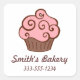 Um cupcake cor-de-rosa é o ponto focal deste adesivo com estilo retroativo. Use esses cupcakes bonitos para uma butique, sacos de presentes, convites, selos de envelopes, negócios, uma padaria, classe, escola, presentes, uma festa de aniversário, artesanatos, álbuns, etc... A design é de arte original.
