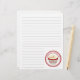 Receba papel com linhas opcionais, que podem ser removidas. A parte inferior apresenta uma ilustração de um cupcake de veludo vermelho com dentro de gelo branco um círculo decorativo vermelho e branco com texto vermelho. Personalize com seu nome.