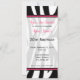 Um convite com um cupcake rosa-quente descrito em dentro preto com quadros rosa e preto correspondentes. O plano de fundo é impresso em preto e branco. O lado oposto apresenta um plano de fundo de impressão zebra correspondente a um texto preto e rosa sobre o lado dela. Personalize com detalhes do evento.