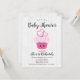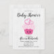 Cupcake rosa-branca Convite para Chá de fraldas Ka
