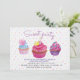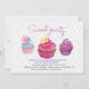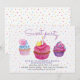 Fundo colorido de aspersão com escrita decorativa com cupcakes e ilustrações doces em lindas cores, juntamente com uma escrita fofinha para todas as informações. Celebre as ocasiões com nossa coleção de doces e doces que tem itens que você pode misturar e combinar para atender às suas necessidades.