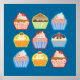 Poster com design com muitos cupcakes de arte vetorial em fundo azul.