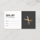 Cupão de cartão de compromisso branco/cinza escura mínimo para cabeleireiro. Design com padrão de tesoura dourada.