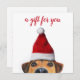 Óptica ilustração animal do Certificado de Presente de Natal Feliz: Cão curioso vestindo um chapéu de Papai Noel.