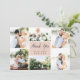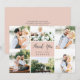 Compartilhe seis fotos de casamento preciosas com nosso elegante e simples design de cartões de agradecimentos plano. Suas fotos estão organizadas em um layout de colagem ao redor de um elemento central cor-de-rosa pincelado lendo "obrigado você" em letras de escrita de caligrafia fora do preto. Personalize com seus nomes abaixo e adicione uma mensagem pré-impressa personalizada ao verso.