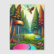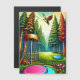 Trocando campo de golfe em disco com a Águia sobrevoando os pinheiros, a arte ai com cores vintages e vibe de acampamento.