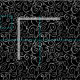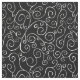 O tecido na moda apresenta curvas brancas de rolagem pintadas manualmente neste design de repetição em todas as partes em um plano de fundo preto. A imagem decorativa é livre fluindo e ousada.