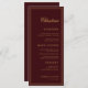 A burgundy and gold place card menu featuring elegant typography, refined accents, and space for the guest name. The rich color palette creates a timeless, upscale look ideal for formal weddings, evening celebrations, or fall events. This versatile piece works as both a menu and a place card, adding a polished, coordinated touch to each table setting.