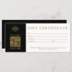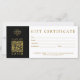 Modern minimalist business gift certificate featuring QR code, logo and contact info in a clean black and gold design. Combines both a gift certificate and a business card in one. Perfect for small business owners, salons, spas, boutiques, or corporate gifting. Personalize with your own text and company branding. A simple, professional way to offer gifts, promotions, or store credit. Elegant and custom-made to match your unique brand style. Great for holidays, birthdays, thank you gifts, or special events.