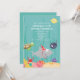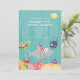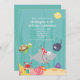 Bonita e colorida sob o convite de aniversário do mar com uma série de criaturas marinhas. O tubarão de aniversário com uma festa divertida, à qual se juntam os amigos tartaruga marinha, raia, caranguejo, peixe palhaço, baiacu e peixe-estrela.