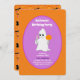 Fantasma de bebê e Convite de aniversário de abóbora moderno. O texto está pronto para ser personalizado.