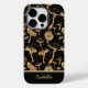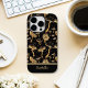 Um padrão divertido e único de cogumelos em preto e dourado e você pode facilmente personalizar a tipografia dourada com seu próprio nome.