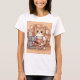 A Cute Funny Barista Cat with Coffee T-shirt with a soft brown and yellow cozy coffee shop background.