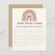 Carta de juego con el nombre del bebé, con tematica estilo boho con un lindo arcoiris en tonos cafe, ideal para ti fiesta de Baby Shower de primavera o verano. Los textos son editables Juego perfecto para jugar durante el baby shower. Se pide a los invitados que escriban los nombres de los bebés que comienzan con cada alfabeto. ¡Quien termine todos los alfabetos primero gana!